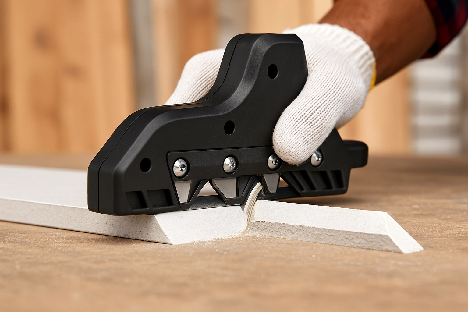 It shaves a smooth 45° angle so every join sits flat, tapes clean, and finishes fast.